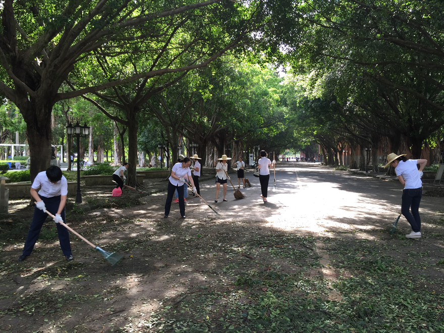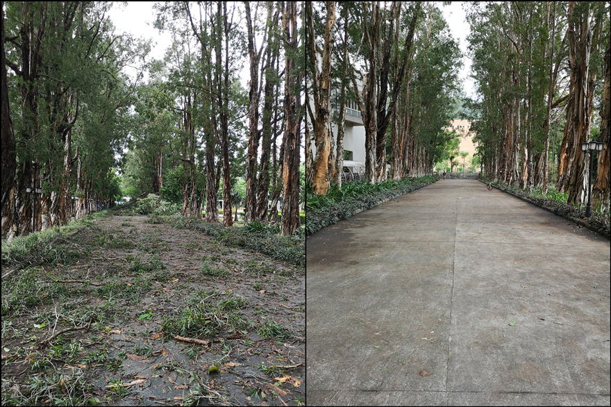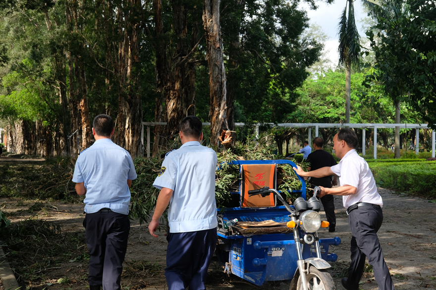 目前灾后的恢复工作正在紧张进行中。灾害发生后,后勤处按照学校领导部署,迅速启动紧急预案,坚守工作岗位,积极采取切实有效措施,全面做好供水供电保障、设施设备检修、断树残枝清理、校园秩序恢复等工作,把台风灾害带来的损失控制在最低程度。