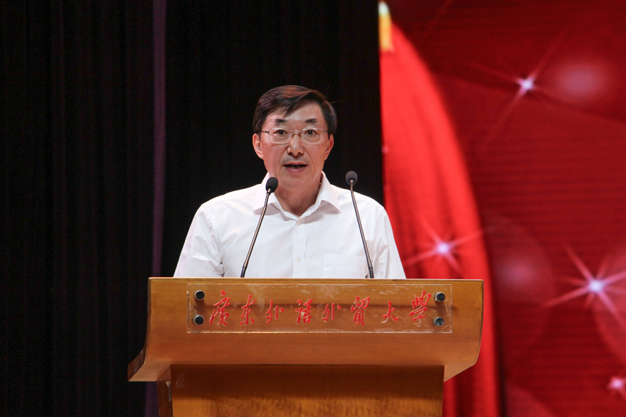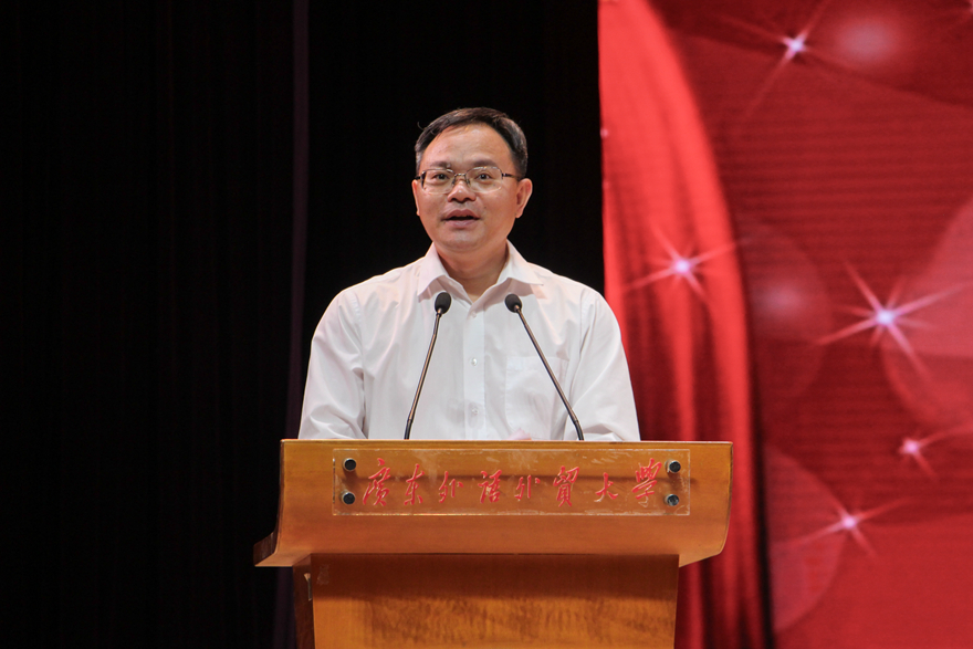 石佑启在表彰报告中总结了学校过去一年的工作成绩,并分享了过去一年在各个领域、各项工作中涌现出来的先进集体和优秀个人的事迹。他将学校取得的成绩和先进单位及个人的事迹总结为七个方面:不忘初心,牢记使命,党建思政提升新水平;勇攀高峰,双轮驱动,学科建设开创新格局;以本为本,实现回归,人才培养提升新质量;重视人才,追求卓越,科研创新收获新成果;彰显特色,深耕细作,教育国际化展现新气象;勇于担当,砥砺前行,社会服务开创新局面;精细管理,热情服务,管理工作迈上新台阶。石佑启希望教师们重温立德树人的初心,牢记教书育人、传道授业的神圣职责,甘守三尺讲台,做有理想信念、有道德情操、有扎实学识、有仁爱之心的好老师;秉承广外人务实奋进的精神品格,始终与时代同行,以更大的勇气魄力、更强的责任担当和更新的奉献作为,开创广外更加美好的明天。