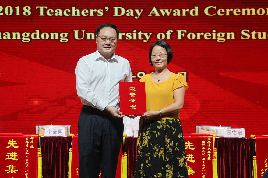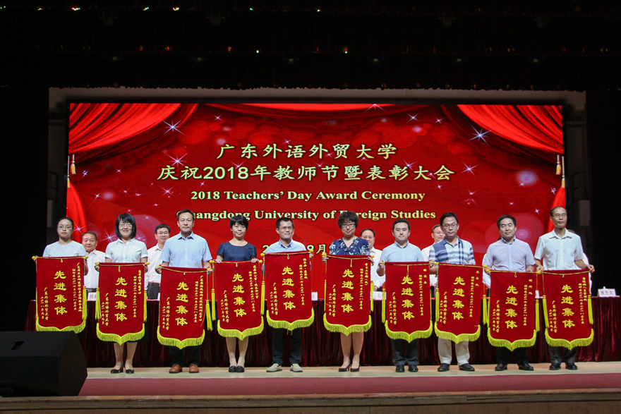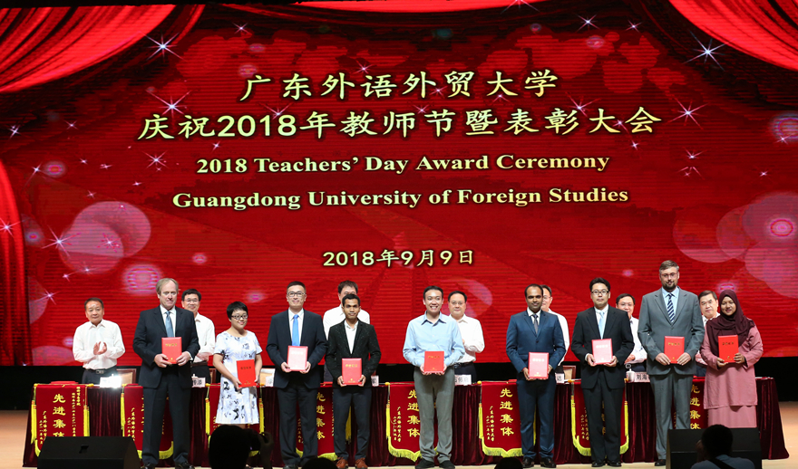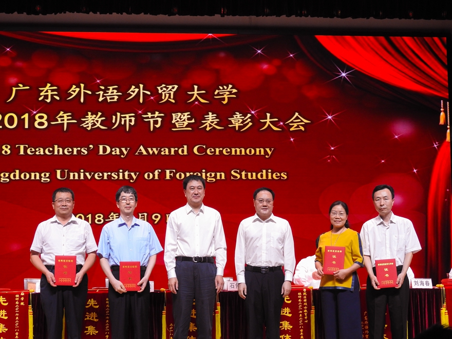 校领导为“国家百千万人才工程‘有突出贡献中青年专家’”获得者、“广东省岗位学雷锋标兵”获得者、“南粤优秀教师”和“南粤优秀教育工作者”获得者、2017-2018学年度学校优秀境外教师、2017-2018学年度学校先进集体等颁奖,并为2017年9月1日至2018年8月31日期间退休教职工代表颁发荣休证书。