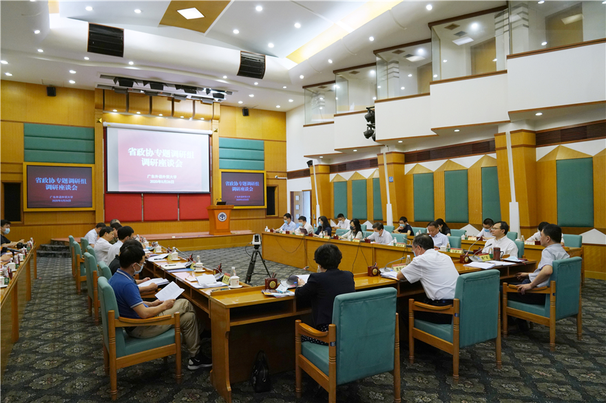 本网讯 为深入贯彻落实习近平总书记给北京科技大学全体巴基斯坦留学生的重要回信精神和省委省政府《关于做好新时期我省教育对外开放工作的实施意见》。5月26日,省政协副主席袁宝成率调研组来校开展“来粤留学生教育管理服务工作”专题调研。省政协办公厅副秘书长黄庆勇,外事侨务委员会主任谭一鸣、副主任罗军、专职副主任施志全和委员,我校党委书记隋广军,副校长刘建达、陈林汉、焦方太等参加调研。
