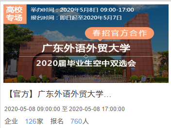 本网讯 为贯彻落实教育部、省教育厅关于做好2020年高校毕业生就业的工作要求,最大限度降低疫情对我校2020届毕业生就业工作的影响,5月8日,我校举办了第五场毕业生春季网络视频招聘会。