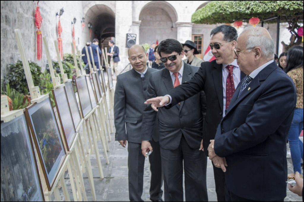 中国驻秘鲁大使馆文化参赞贺踊(右二)出席美丽中国图片展开幕式