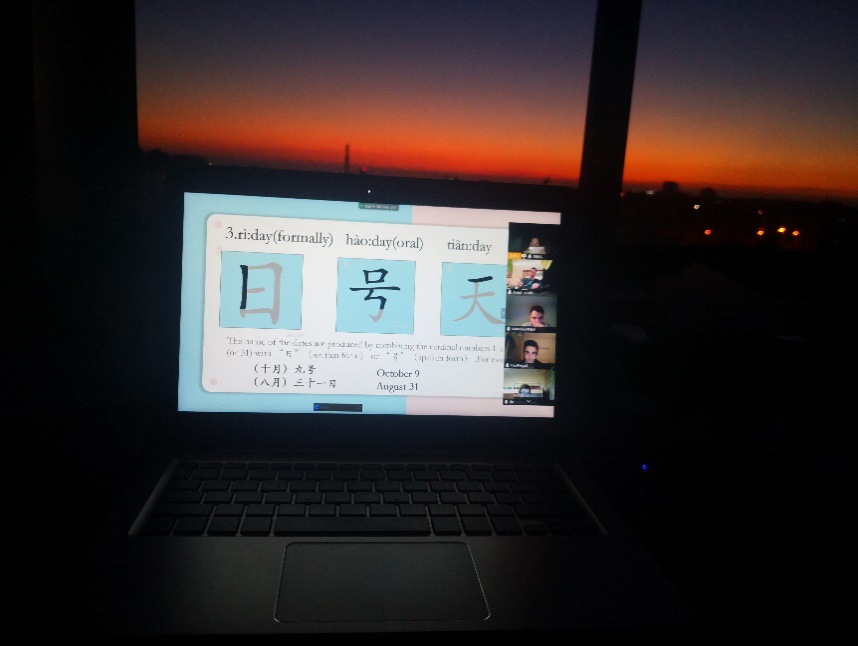 一堂质量高、互动强的网课需要具备稳定的网络环境、优质的网络教学平台、齐备的硬件设施,当然也离不开授课老师的精心准备以及学生的积极参与。线上教学实行伊始,有学生反映家里网络不够稳定、家中环境嘈杂等问题。对于两位汉语志愿者教师来说,需要快速适应教学模式的转变、掌握平台操作技术、调整教学方式,努力使线上课堂变得高效有趣,充分发挥出线上教学的便捷性和灵活性。经过一段时间的摸索,在孔院师生的共同努力下,大家很快适应了线上教学模式,实现了“宅”在家里也能学好汉语的初衷。