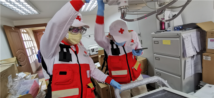 艾河旭(左)协助专家进行DR设备调试