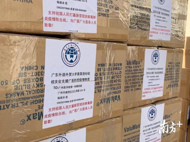 这些鼓励汇集成了伦炳强等校友们更大的力量。当天,广外洛杉矶校友会第二批口罩也交付物流公司发往国内。如今,第三批口罩也已“就位”,即将起飞抵达终点。
