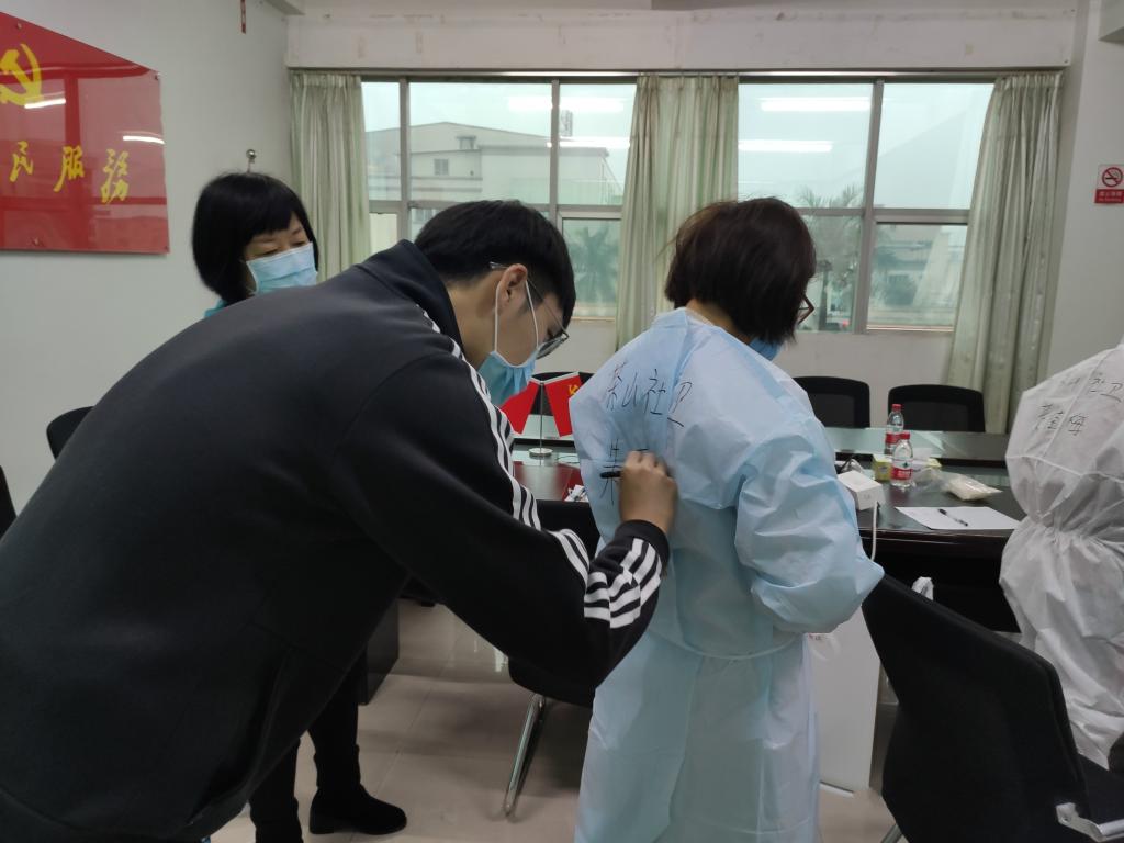 在韶关乐昌市国道107坪石西站和粤北收费站,常常能看到一个年轻的身影——唐志娣。商学院的唐志娣同学看到志愿者招募通知后,第一时间报名。在市团委的统一安排下,唐志娣辗转60多公里来到了坪石西站和粤北收费站,协助收集、统计过往车辆信息,派发《健康告知书》并为司乘人员测量体温。从早上8点到下午4点,她的工作常常是“哪里需要补哪里”。“虽然天气恶劣,但司乘朋友们的积极配合,让我们这些在大雨中三班倒的交警、医护人员和志愿者的心中生起了一股暖意。”唐志娣说。