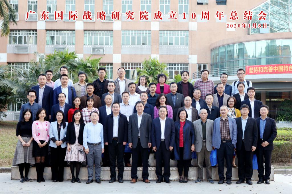本网讯 1月8日下午,广东国际战略研究院成立十周年座谈会在我校国际会议厅举行。我校党委书记、战略研究院常务副院长隋广军,校长石佑启,原副校长顾也力,以及党办校办、党委宣传部、研究生院、科研处、人事处、国际交流处和财务处等机关部处、相关学院代表、校内各研究中心代表、研究院老员工代表和全体成员共60余人参加了座谈会。