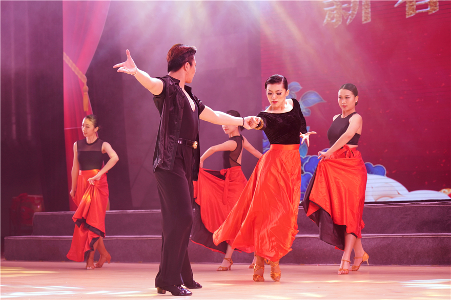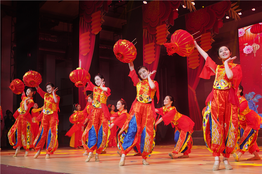由艺术学院2018级舞蹈专业学生带来的舞蹈《锦绣中华》,串联了不同民族的舞姿,为这场文化盛宴增添了美妙的光彩;新闻与传播学院学生带来的朗诵《青春之歌》演绎了青春里该有梦想、奋斗和奉献,鼓舞着我校师生在新的一年努力奋进、不负韶华;艺术学院教师羡涛、蔡静雯表演的歌舞《从那一刻起》唱出了青年一代的远大理想与责任担当,为祖国的锦绣前程和学校的光辉未来送上了美好的祝福。