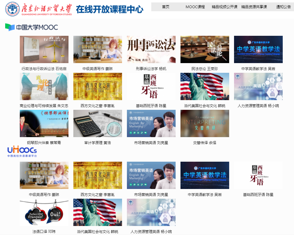 目前,我校已有15门课程在国内公开平台上线,其中有4门省级系列在线开放课程,8门省级在线开放课程。学校上线的所有在线开放课程链接已同步至学校“在线开放课程中心”网站(https://jpkc.gdufs.edu.cn),便于校内外学习者访问学习。