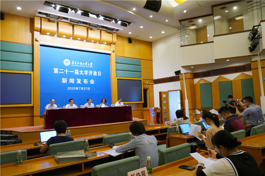 本网讯 今年我校新增国际组织与全球治理专业,开设法学(国际组织创新班)等系列创新班。这是我校副校长焦方太在7月27日举办的第21届大学开放日新闻发布会上公布的信息。新闻发布会吸引了中央、省内十余家主流媒体记者前来采访,我校招生办主任姜琳、学生处处长谢应东、学生就业指导中心主任康为茂、宣传部校报主编宾锐光出席发布会。