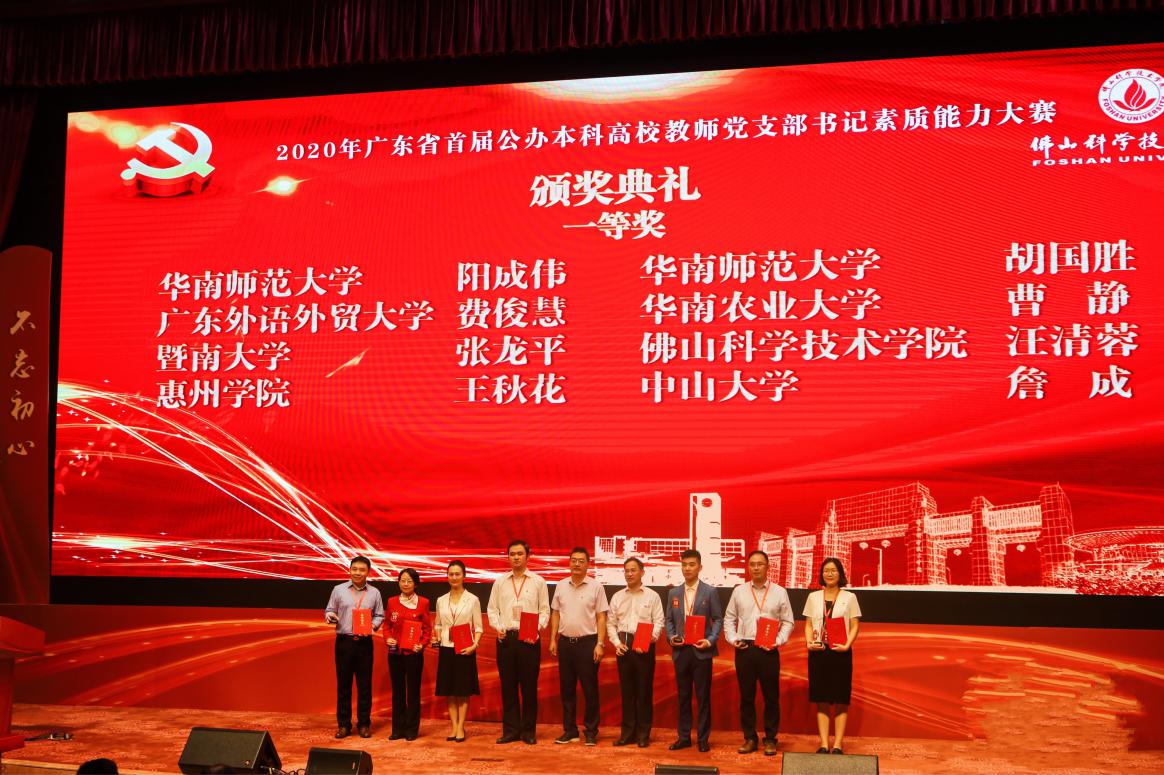 本网讯 9月26日,广东省首届公办本科高校教师党支部书记素质能力大赛决赛在佛山科技学院举行。我校西语学院教师第二党支部书记费俊慧在48名选手中脱颖而出,以总分前三的佳绩获得一等奖。