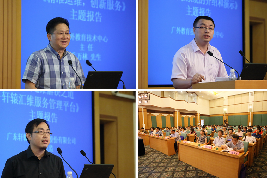 乔万林作主题报告(左上)、 廖信海进行系统演示(右上)、公司代表介绍方案(左下) 、会议现场(右下)