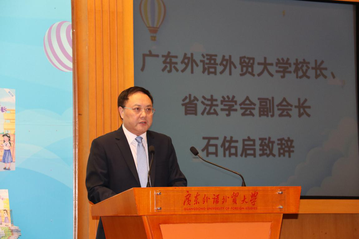 本网讯 12月1日下午,由广东省法学会主办,珠海市法学会、广东外语外贸大学、广东省法学会宪法学研究会和广东教育出版社联合承办的“纪念国家宪法日暨《法伴我成长》丛书首发式”在我校举行。中国法学会副会长张苏军,广东省法学会会长梁伟发,我校校长石佑启,广东省法学会常务副会长陈文敏,广东省法学会副会长何桂复,广东省委政法委专职委员刘永庆,省委政法委二级巡视员、省法学会副会长兼专职秘书长姜滨,广东教育出版社副总编辑卞晓琰等出席此次活动。来自民主与法制社、人民法治报、中国经济导报、广东广播电视台、南方法治智库、南方日报、南方网、广州日报等多家媒体参加本次活动,并进行宣传报道。