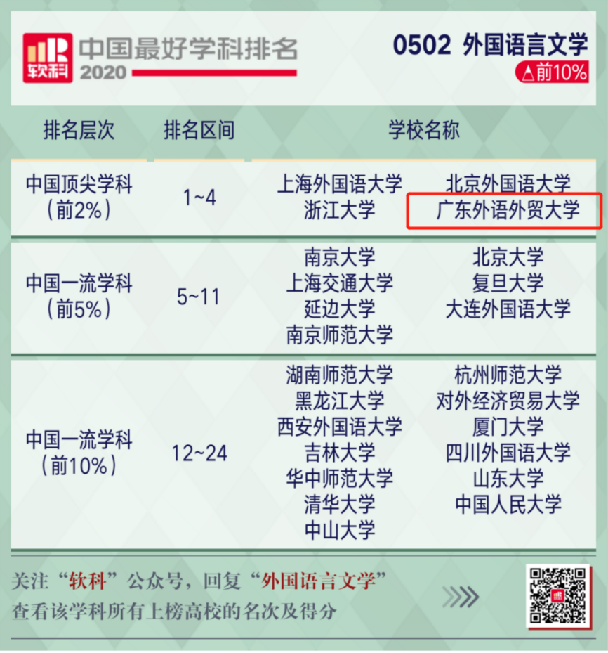 我校外国语言文学上榜“2020软科中国最好学科排名”前2%