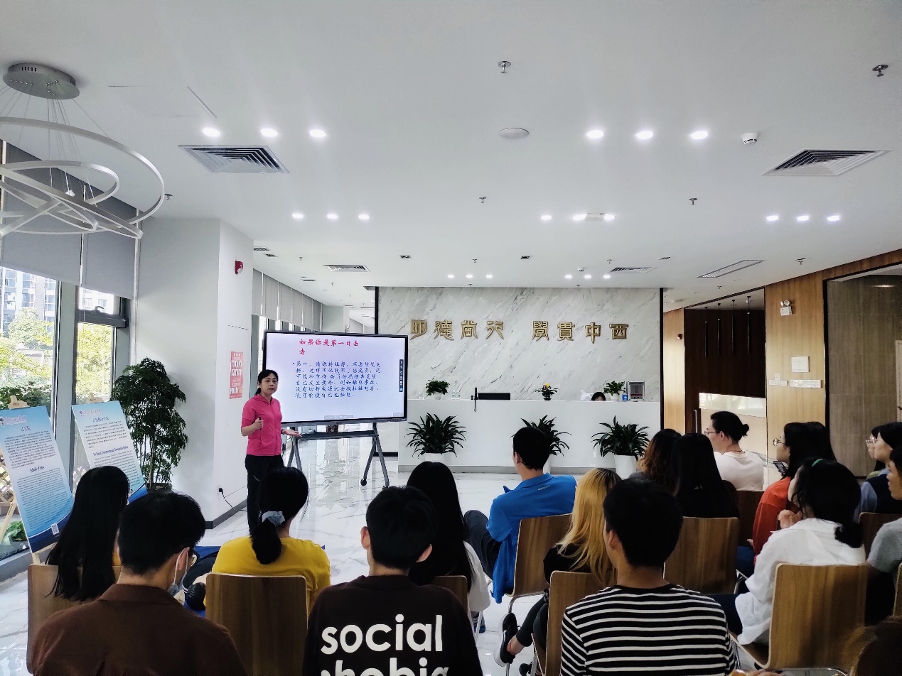 为了让学生提升自救互救意识,加强自救互救技能,主题为“健康教育——应急培训”的急救培训由门诊部带领学生在进德楼开展。培训会上,门诊部老师讲解了CPR(心肺复苏术)的急救知识和技能运用。同学们在老师的引导下进行了CPR实际操作训练。同学们表示,通过应急知识和技能的培训,了解到了更多更专业的急救知识,收获颇丰。