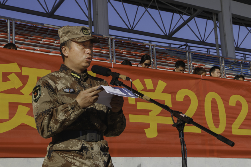 本网讯 1月2日,2020级新生军训动员大会在我校南北校区体育场同时举行。军训领导小组组长、校党委副书记李云明,军训领导小组组长、副校长刘海春,广州市番禺区国防教育训练基地主任黄光忠,军训旅副旅长熊建及相关职能部门负责人、各学院负责人、承训教官、教师代表出席大会。