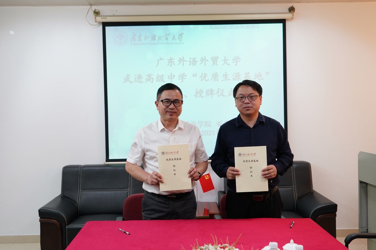 黄卓贤提到,江苏省武进高级中学创办于1946年,是江苏省首批四星级学校、江苏省著名重点中学、国家级示范高中。他介绍了江苏省武进高级中学对多语种教学的需求,希望借助我校国际化的“南风”,把先进的国际课程理念送到江苏。蒋红卫从江苏省武进高级中学师资、德育、办学特色和基础设施等方面做了重点介绍。
