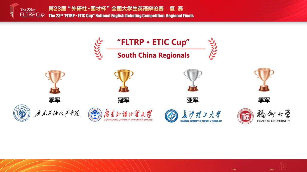 本网讯 4月16日至17日,第23届“外研社•国才杯”全国大学生英语辩论赛在云端展开华南地区复赛,来自广东、广西、福建、湖北、江西、云南、贵州、海南、港澳台等共计96支队伍参加了华南赛。校团委指导下的广外德思团队英语辩论队胡艺馨(中文学院)、史佳悦(翻译学院)在专业指导老师王欣的带领下参加比赛,并获冠军。此前,辩论队进行了六轮校园选拔赛。