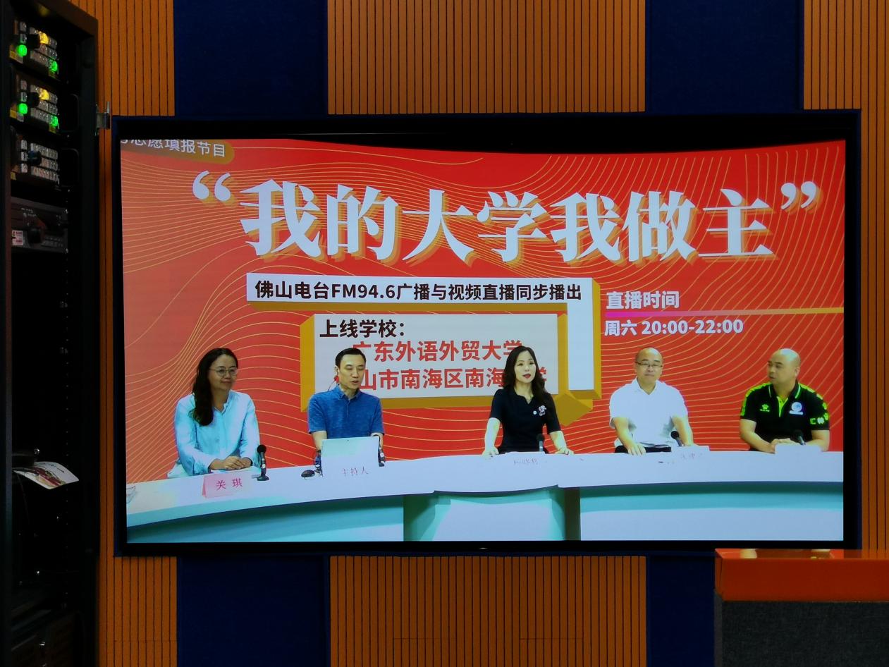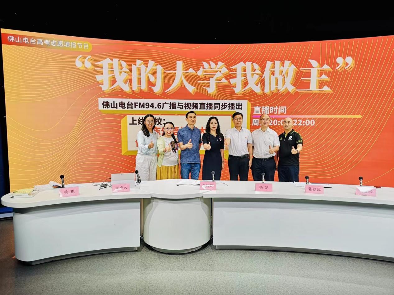 本网讯 5月15日晚,我校招生宣传走进佛山电台高考品牌节目《我的大学我做主》。本次直播吸引了广大考生和家长们的关注,视频累计流量4.3万,实时广播收听预计达16万。