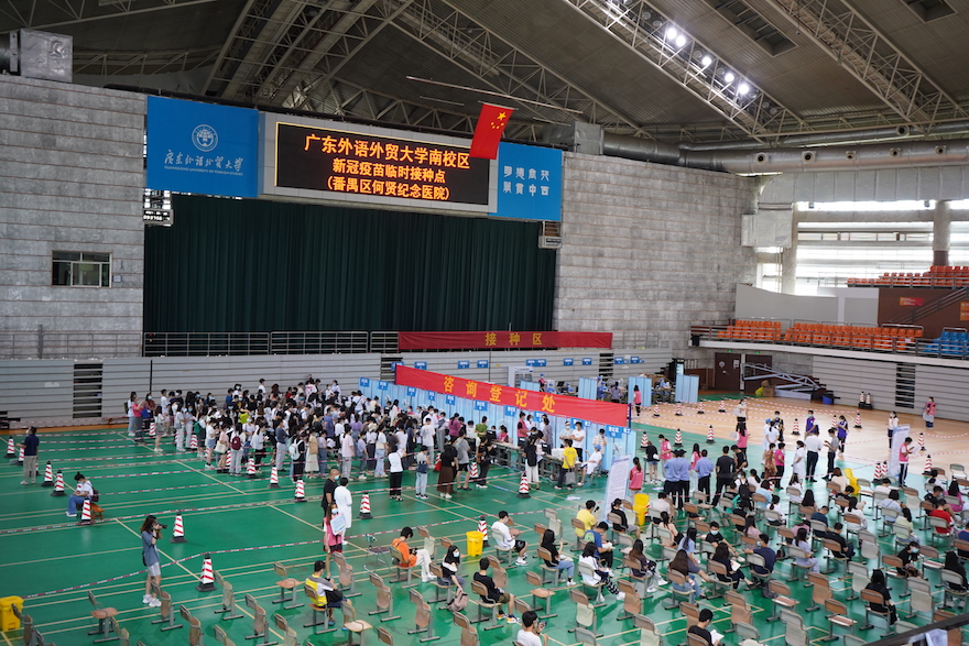 本网讯 5月20日上午,南校区新冠疫苗接种工作在体育馆启动。本次疫苗接种工作由番禺区何贤纪念医院承接,首日完成教职工和商学院、法学院、教育学院、信息学院、公管学院、数统学院、继教学院学生疫苗接种近3500剂。副校长刘海春现场指导工作并慰问医疗队和工作人员。