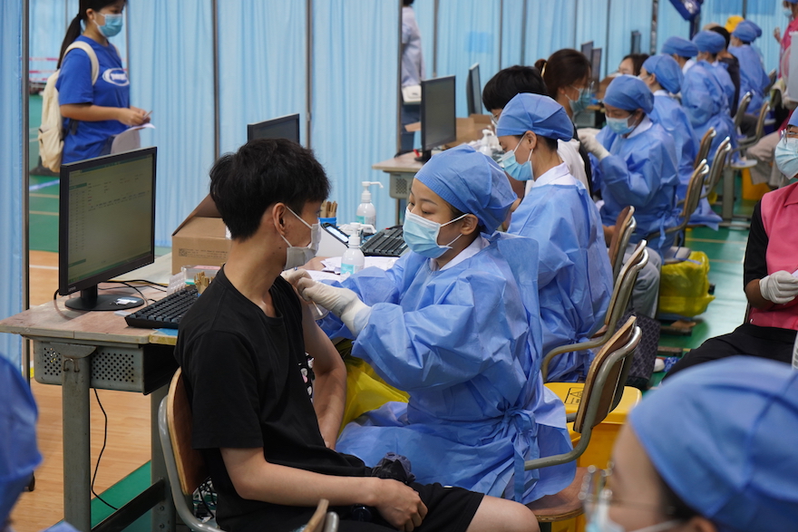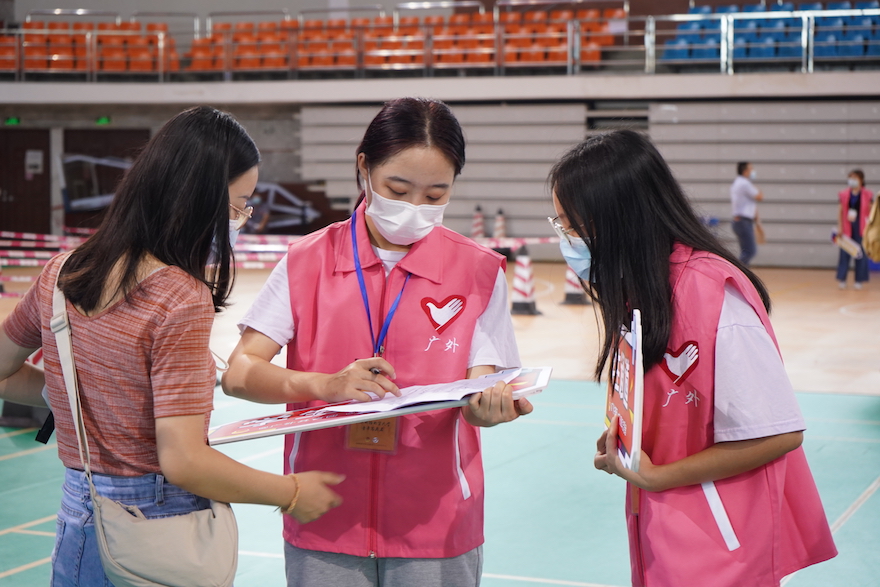 由于天气炎热,体育馆已早早开启了空调设备。记者了解到,疫苗接种现场分为等候区、咨询登记区、接种区、留观区、应急处置区,各区域均设有医务人员以及志愿者进行相关指引,秩序井然。疫苗接种人员经测温和登记后有序接种,在留观区观察三十分钟无异常反应后方可离开。