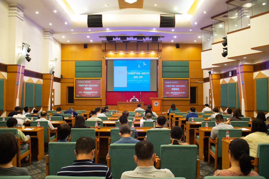 省委统战部研究室负责同志紧扣《条例》,联系高校实际,对《条例》修订的背景、过程和意义,统一战线的重要地位作用,加强党对统一战线工作的集中统一领导,各领域统战工作的主要任务和着力重点,加强党外代表人士队伍建设,抓好《条例》的贯彻落实等作了详细解读。