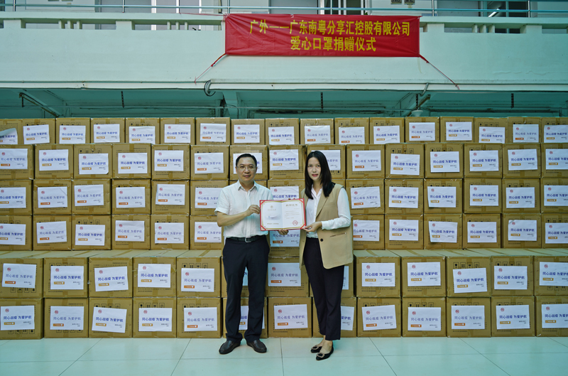 本网讯 为加强广州近日疫情防控,6月2日下午,广东南粤分享汇控股有限公司心系我校师生防疫,向我校捐赠三十万只医用一次性口罩,副校长刘海春代表学校接受捐赠。