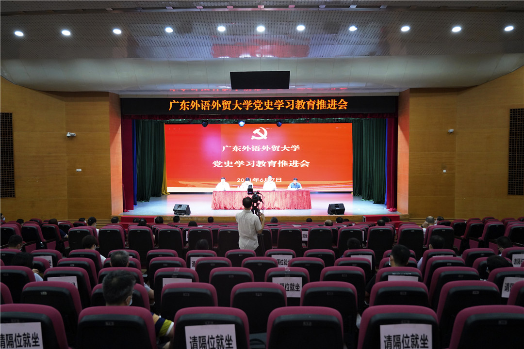 本网讯 6月7日上午,我校在北校区六教报告厅召开党史学习教育推进会。省委教育工委党史学习教育第六巡回指导组组长罗贤甲、副组长钟智以及组员出席会议。学校党委书记隋广军总结部署党史学习教育工作,校长石佑启主持会议。校领导、校党史学习教育领导小组办公室成员、机关职能部门主要负责人、基层党委(党总支)书记等参加会议。