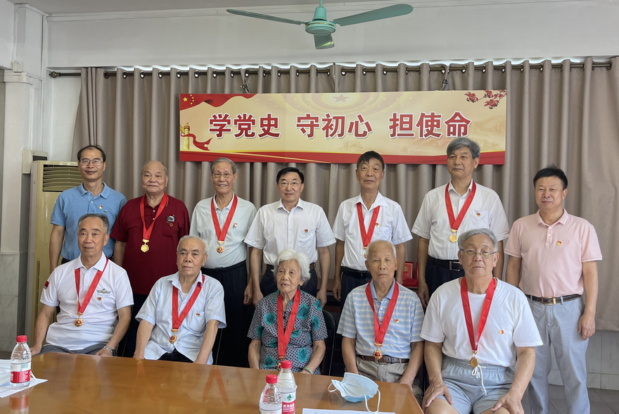 据悉,中共中央今年首次颁发“光荣在党50年”纪念章,作为庆祝中国共产党成立100周年活动的重要组成部分,我校有100名老党员获“光荣在党50年”纪念章。
