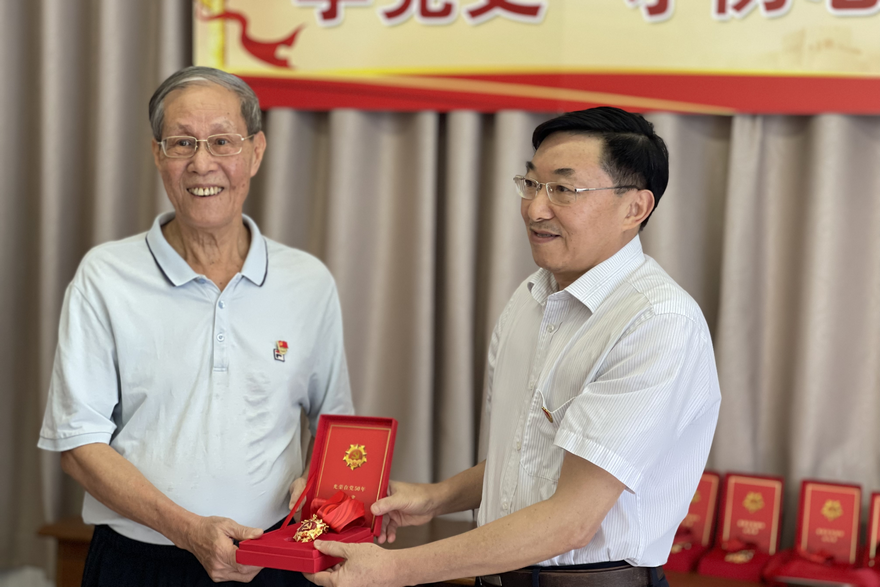 李云明为9名老党员代表颁发“光荣在党50周年”纪念章。他强调,每位党员在本职岗位上把自己的工作做好,就能为实现中华民族伟大复兴贡献力量。党员没有退休之说,离退休党员把自己的身体和家庭管好,关键时刻挺身而出,勇于维护党的权威和形象,就是很好地履行了党员义务。