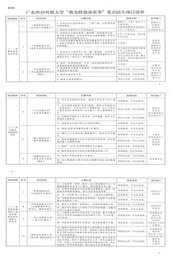 其中“三大类别”包括保障和改善民生需求、深化服务改革便利师生和贯彻新发展理念,推进治理体系和治理能力现代化。“十大行动”包括:以“美丽校园行动”提升文化育人环境、以“幸福校园行动”改善教学生活条件、以“平安校园行动”保障师生健康和校园安全、以“人文校园行动”服务学生成长、以“暖心校园行动”服务教师发展、以“温馨校园行动”服务校友合作与发展、以“智慧校园行动”推进校园信息化建设、以“治理效能提升行动”加强内部管理,以“一流大学建设行动”加强“新文科”建设、以“教育评价改革行动”推动“破五唯”制度机制设计,既突出解决师生“急难愁盼”的“小民生”,又兼顾学校事业发展的“大民生”。