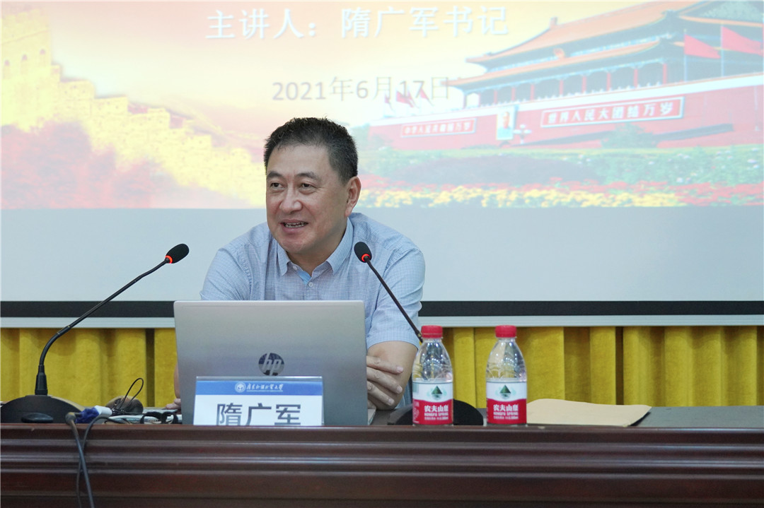 本网讯 为深入推进党史学习教育,切实做到学党史、悟思想、办实事、开新局,6月17日下午,英文学院党委邀请我校党委书记、百年党史宣讲团团长隋广军作“从百年党史中感悟初心使命,以优异成绩献礼建党一百周年”的主题宣讲。宣讲会在北校区第七教学楼水上报告厅举行,英文学院和文科基地相关负责人、系部办主任,全体党支部书记和委员、辅导员、办公室人员等参加学习。