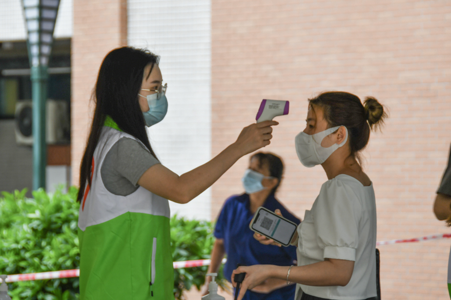 志愿者协助测温