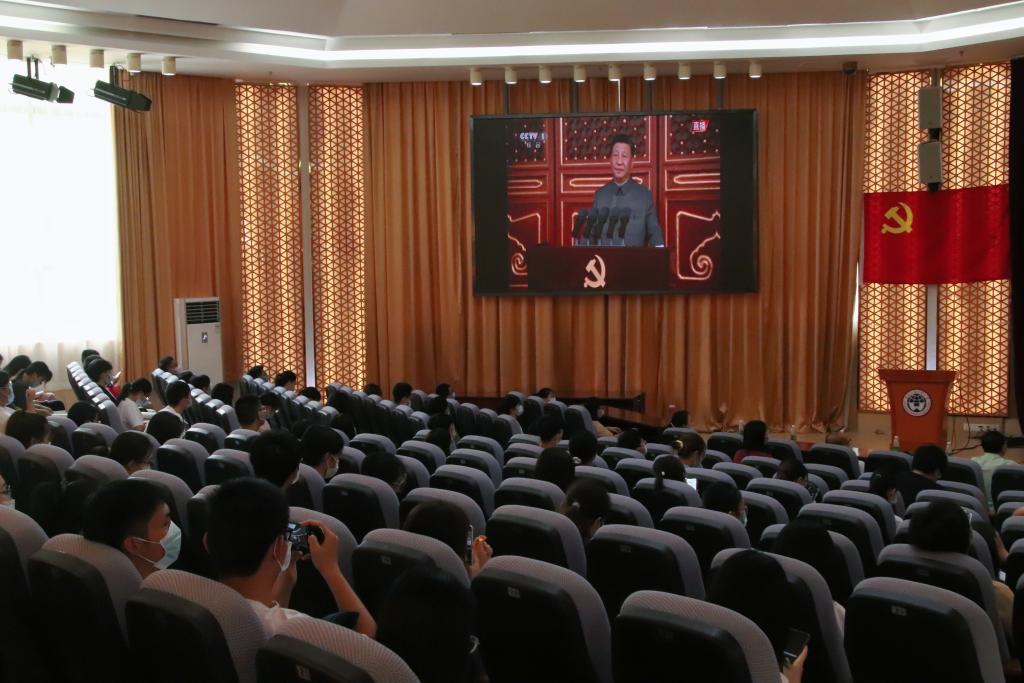 我校组织全体党员师生通过多种方式收听收看庆祝大会直播。学校党委书记隋广军、校长石佑启等校领导以及相关单位负责人在北校区行政楼国际会议厅集中收看庆祝大会直播。同时,学校在北校区六教报告厅,南校区八角楼、学生活动中心设置集体观看会场,并组织其他党员师生通过多种方式收听收看庆祝大会直播。