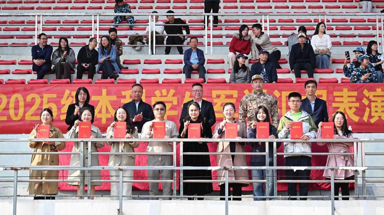 本网讯 迷彩着身志如钢,一番磨砺焕锋芒。1月15日上午,2025级本科学生军训汇报表演暨总结表彰大会分别在白云山校区和大学城校区体育场举行。校党委副书记葛小月,校党委常委、副校长谢伟光分别在白云山校区、大学城校区检阅军训队伍。承训单位领导,学校军训领导小组成员,相关职能部门负责人、各学院负责人,教师代表等出席军训汇演。