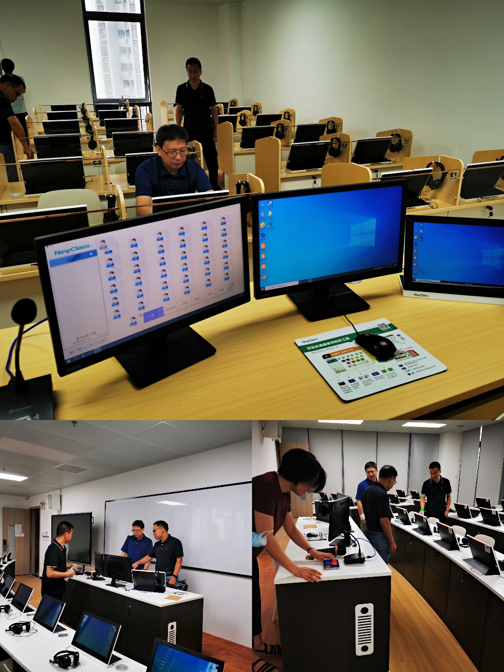 暑假前,网络与信息化中心、高级翻译学院坚持“以生为本、教学优先”的原则,拟定了项目建设方案。暑假期间,按照前期规划并严格遵照建设流程有序推进项目。7月18日,承建单位与物业管理部门签订了安全施工责任书,开始进场施工。施工过程中,网络与信息化中心、高级翻译学院认真监管,严格执行 “一周一总结”,确保建设任务的逐项完成。设备安装到位后,两部门先后派专人进行检测,确保实验室实现和满足原定各项教学功能。