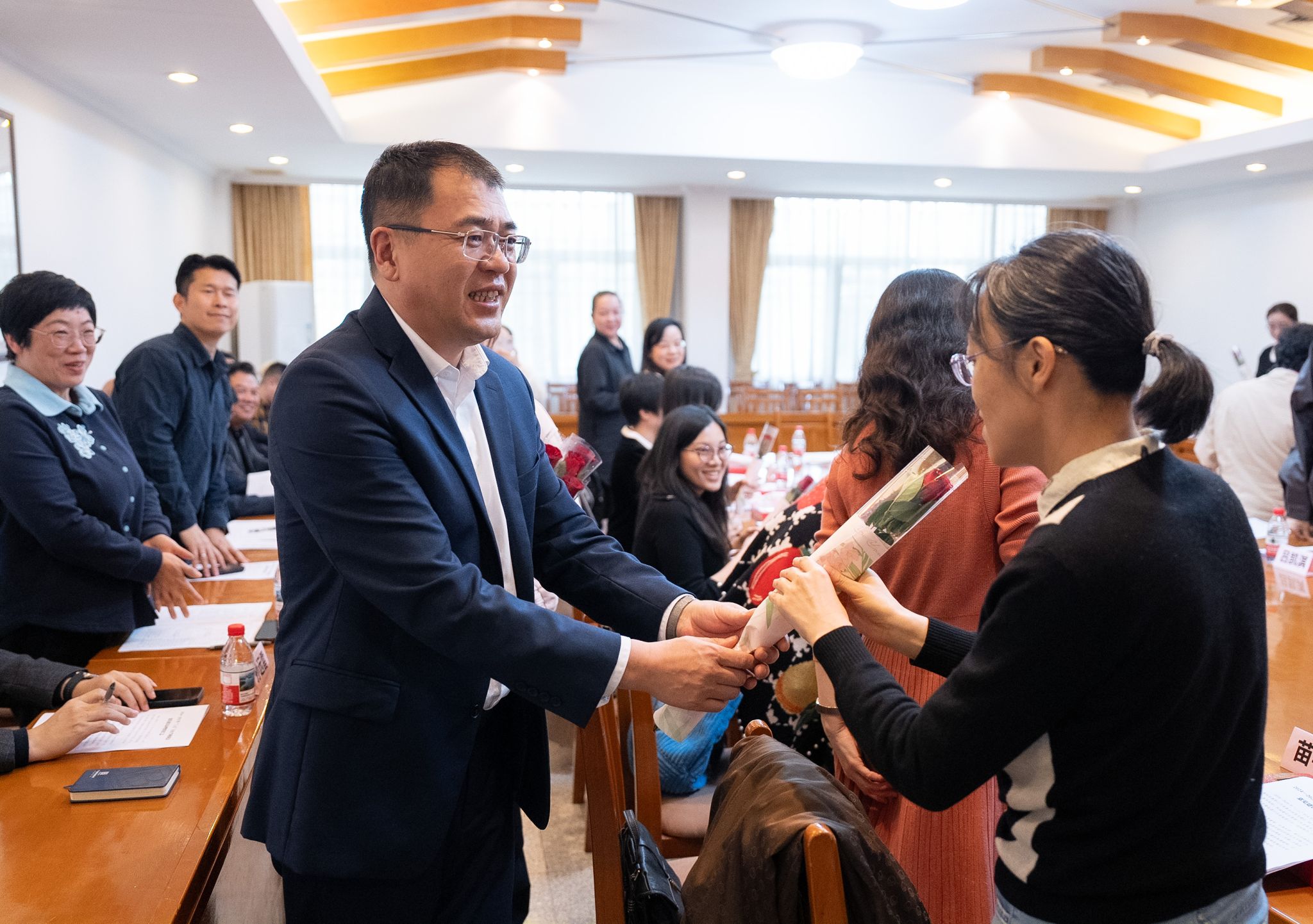 闫相斌和葛小月分别向女教职工代表敬献鲜花,代表学校向全体女教职工致以节日的问候与美好的祝愿。闫相斌指出,我校女教职工占比高,是学校发展的独特优势与宝贵财富。长期以来,广大女教职工深耕教学科研、潜心人才培养、用心管理服务,在各领域勇担使命、实干作为,在推动学校事业发展上作出了重要贡献。习近平总书记指出,今天,中国妇女在经济社会发展中真正发挥着“半边天”作用。中国式现代化新征程上,每一位妇女都是主角。