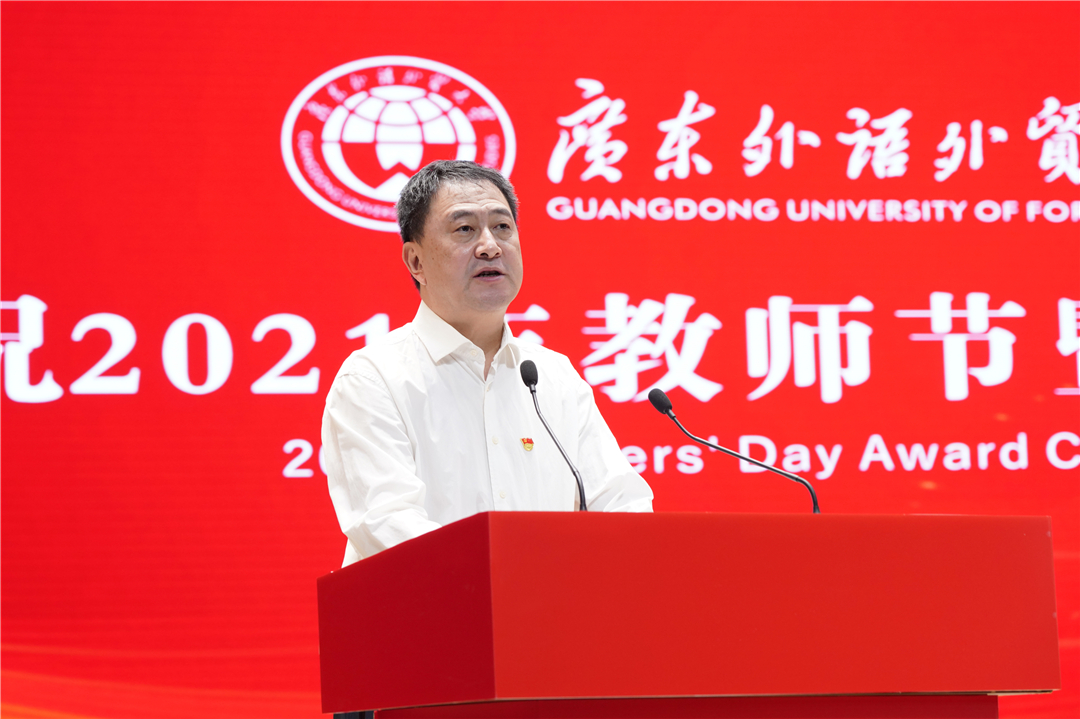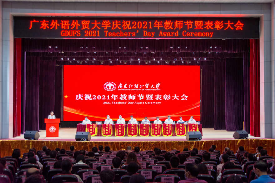 本网讯 云山碧水耀师德,春华秋实满庭芳。9月9日,在2021年教师节来临之际,我校教职工齐聚北校区云山会堂,庆祝中华人民共和国第37个教师节,并表彰学校一批2020—2021年度先进集体和个人。我校党委书记隋广军、校长石佑启分别发表讲话和作表彰报告,副校长王廷惠主持大会,校领导以及教职员工、荣休人员代表共600余人出席会议。