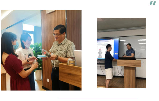 在进德楼内,二楼图书馆专门开设了“德育图书专架”,知识城校区将进一步加强研究生德育教育。“老师,您好”“老师,您辛苦了”“老师,祝您教师节快乐”,知识城校区的同学们在课前集体起立向老师告白。“三尺讲台,三寸舌,三寸笔,三千桃李;十年树木,十载风,十载雨,十万栋梁” 。同学们自发为老师们准备了鲜花及礼物,感恩老师的谆谆教诲,表达对老师的祝福。