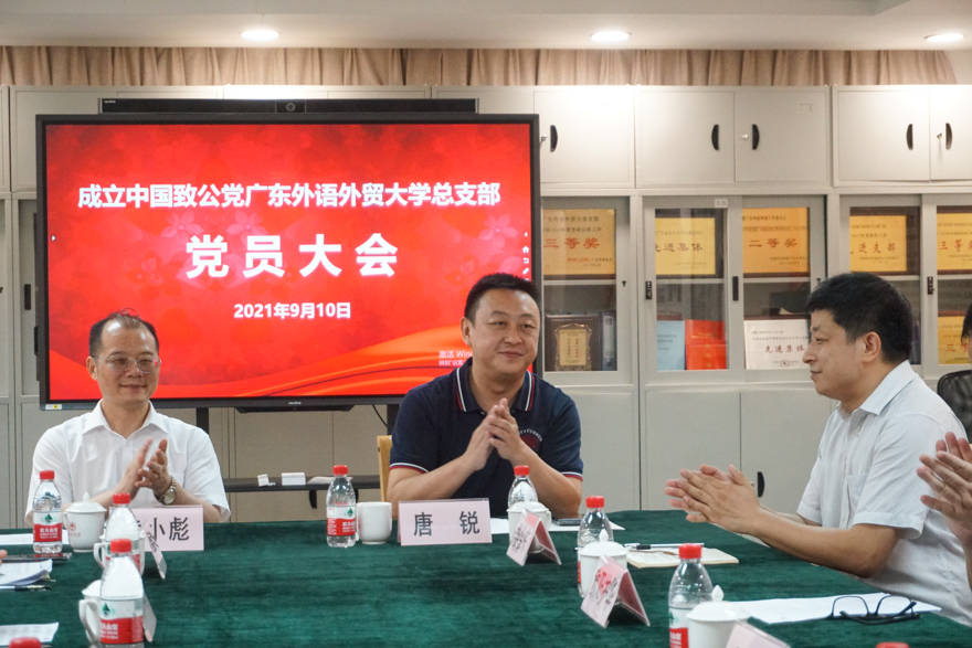 刘小平代表兄弟党派学校基层组织对致公党广外总支部的成立表示祝贺。会议由致公党广外总支部副主委杨桦主持。
