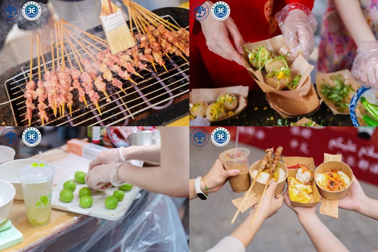 除了推出特色活动,各语系摊位还精心准备了经典美食。韩国火鸡面与辣炒年糕、土耳其咖啡与米布丁、坦桑尼亚薯条煎蛋、巴基斯坦鸡肉抓饭配手工拉西、印度脆球小吃、波斯烤鸡卷配藏红花奶茶、阿拉伯鹰嘴豆泥配皮塔饼与炙烤羊肉串配骆驼奶茶、孟加拉爆浆脆脆球、中式紫苏饮与青团汇聚一堂,多元风味交织成一幅生动的亚非美食图景。各国美食与特色活动相映成趣,共同呈现了一场融合味觉体验与人文交流的文化盛宴。