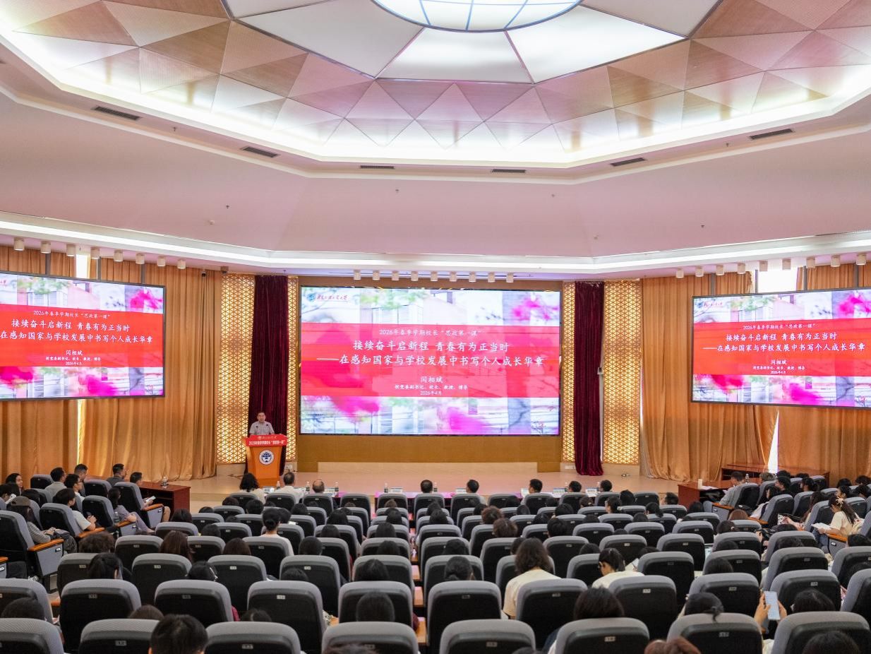 本网讯 4月14日上午,学校2026年春季学期校长“思政第一课”在大学城校区八角楼会议室举行。校党委副书记、校长闫相斌以“接续奋斗启新程 青春有为正当时——在感知国家与学校发展中书写个人成长华章”为主题,为师生们带来了一场逻辑严谨、内容翔实、案例鲜活的思政课。本次“思政第一课”由校党委常委、宣传部部长陈彦辉主持。
