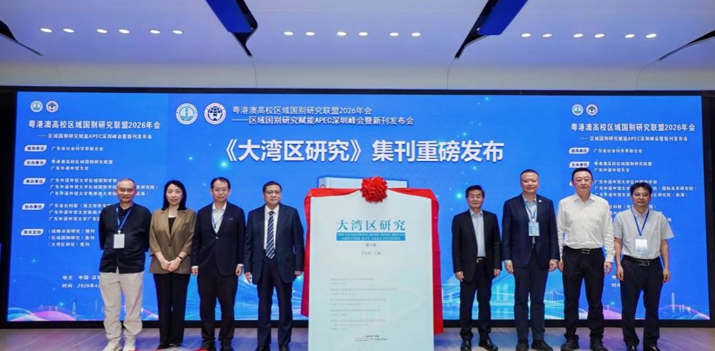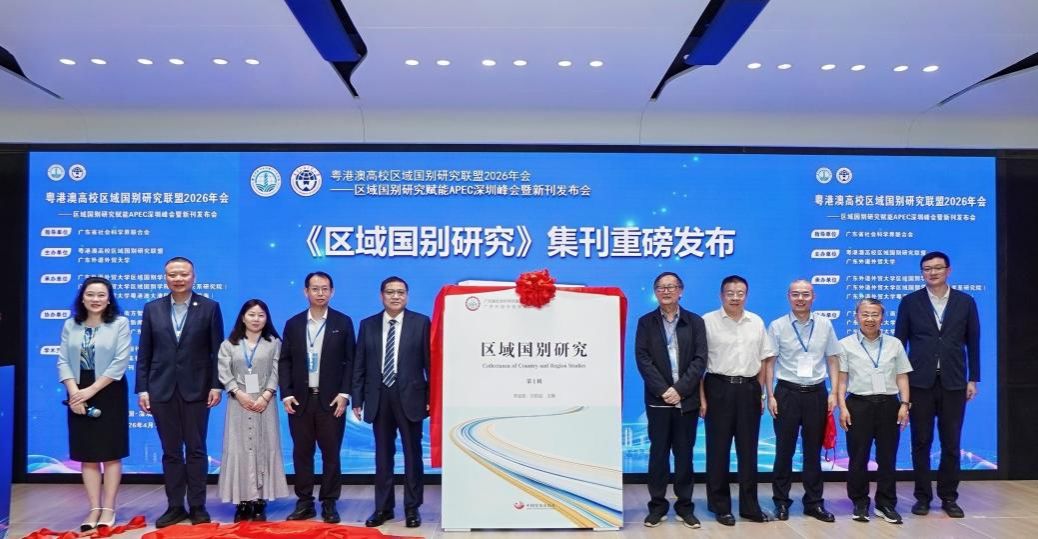 本网讯 4月18日,粤港澳高校区域国别研究联盟2026年会——区域国别研究赋能APEC深圳峰会暨新刊发布会在广东外语外贸大学粤港澳大湾区研究院(前海)举行。本次年会聚焦联盟建设、APEC深圳会议与亚太区域合作、党建赋能区域国别学高质量发展等重大议题,旨在推动区域国别研究更好服务国家战略与区域发展。会议由粤港澳高校区域国别研究联盟、广东外语外贸大学主办,广东外语外贸大学区域国别学部、广东外语外贸大学区域国别学院(国际关系研究院)、广东外语外贸大学粤港澳大湾区研究院(前海)承办。中国社会科学院、上海国际问题研究院、广东省社科联、《南方智库专报》《战略决策研究》《区域国别研究》《大湾区研究》等学术期刊和集刊、深圳前海管理局政策研究和制度创新处、广东教育出版社、复旦大学、南开大学、上海外国语大学及粤港澳高校区域国别研究联盟18所高校的代表共同与会。