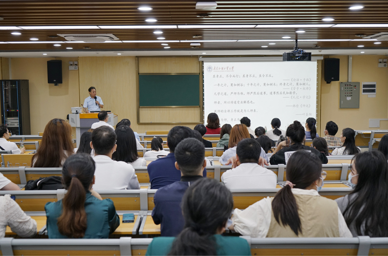 讲座中,董金伟从“师德的定义”、“习近平总书记关于师德师风的重要论述”、“中国传统师德师风的传承与弘扬”、“新时代师德师风新要求”四个方面,结合个人从教经历,和与会的老师们分享了师德师风建设工作是凝心铸魂、立德树人的基础性工程。董金伟表示,教育是国之大计、党之大计,我国目前在实现中华民族伟大复兴的关键期,这就对教师队伍建设、对师德师风工作提出了新的要求。教师的思想政治素质和师德师风关乎学生成长成才,关乎教育改革发展,关乎社会文明风尚,关乎国家长治久安。他鼓励学院教师坚定理想信念、厚植爱国情怀、涵养高尚师德,做好学生锤炼品格、学习知识、创新思维、奉献祖国的引路人。讲座最后,教师们与董金伟进行了交流互动。