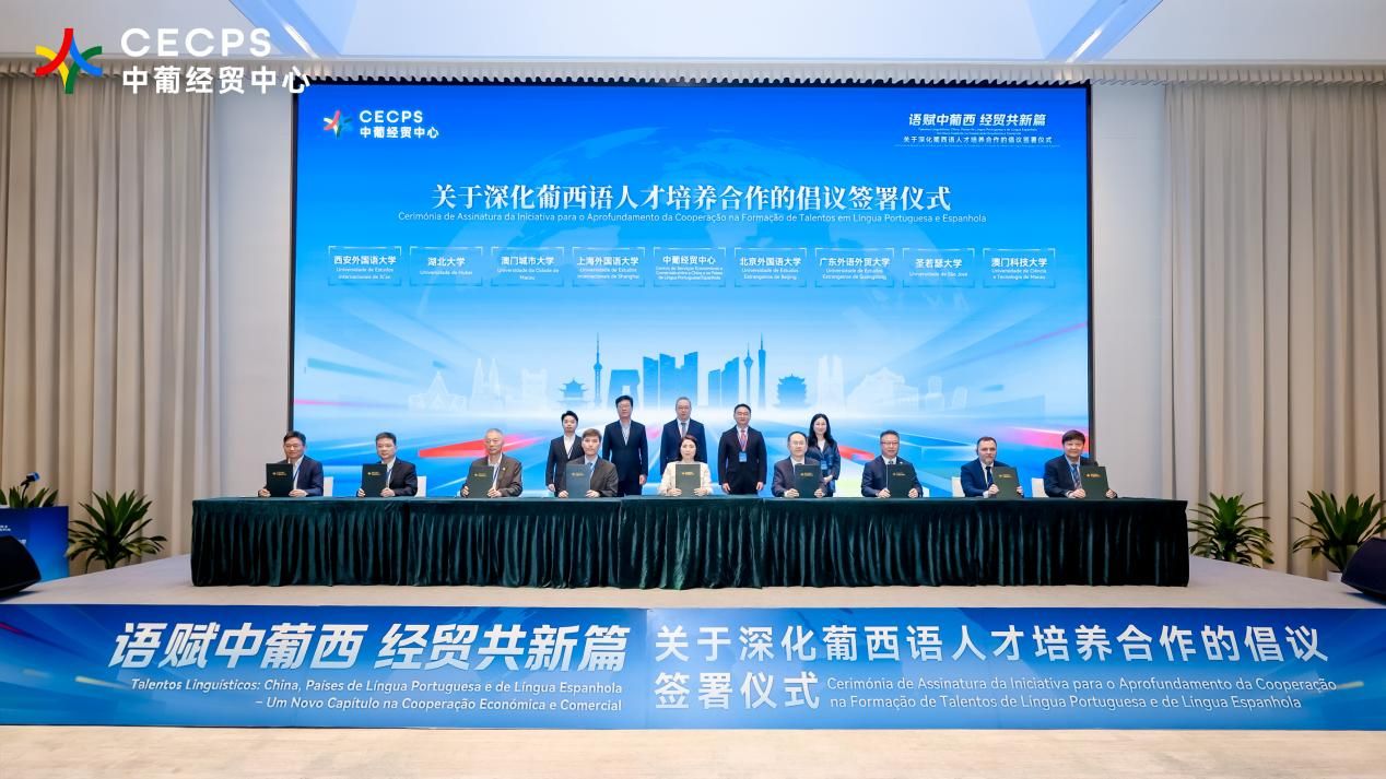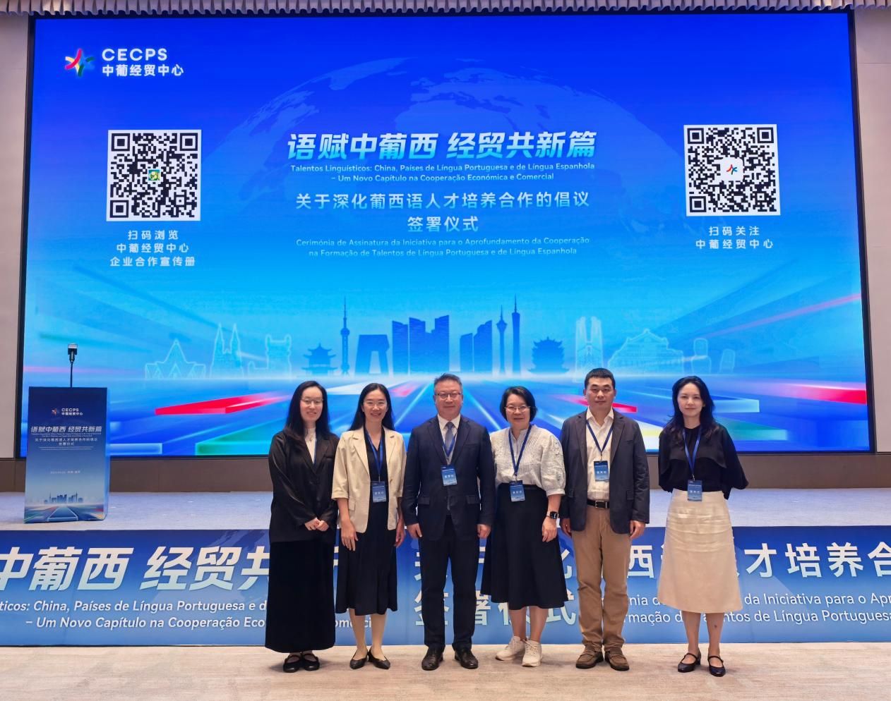 本网讯 4月26日上午,校党委常委、副校长谢伟光受邀到珠海横琴参加由横琴粤澳深度合作区组织、中国—葡语(西语)国家经济贸易服务中心(以下简称“中葡经贸中心”)主办的关于深化葡西语人才培养合作倡议的签署仪式。本次活动旨在联动政府、高校、企业三方力量,深化葡西语人才培养机制创新,拓宽复合型外语人才发展通道。我校作为倡议签署高校之一,与北京外国语大学、上海外国语大学、湖北大学、西安外国语大学,澳门科技大学、澳门城市大学及圣若瑟大学等7所内地及澳门高校,以及横琴粤澳深度合作区执委会、相关政府部门和多家企业代表共聚一堂,共商人才培养新路径。