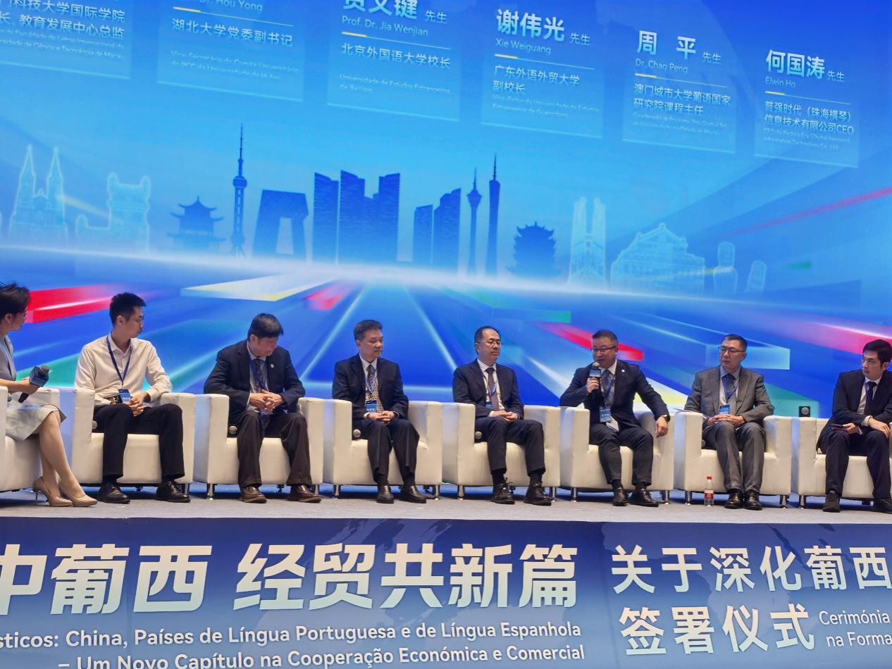 西语学院党委书记王秀民、副院长陈星、副书记魏少娟、葡语系主任尚雪娇、教师杨菁陪同参加了会议并与兄弟院校、政企代表就人才培养、校企合作等议题进行了交流研讨。