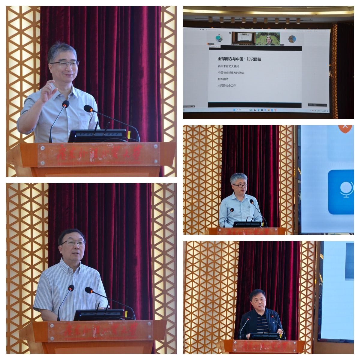 主题报告的第二部分由社会与公共管理学院副院长陈胜主持。中国社会工作学会邹学银秘书长以“全球治理视角下的华人华侨社会工作”为题,论述了华侨华人社会工作的重要意义,进而提出华侨华人社会工作服务的清单。南开大学吴帆教授以“文化谦逊的再发现:中国经验与跨文化社会工作理论重构”为题,指出西方边界理论的局限,介绍文化谦逊模型的实证研究,并提出对中国社会工作的若干启示。上海大学杨锃教授以“国际减贫治理与中国社会组织协同出海:社会工作专业服务何以可能何以可为”为题,分别介绍了中国社会组织出海服务的现实基础与逻辑支撑以及核心路径与功能定位,并在此基础上提出社会工作出海协同模式的破局路径。浙江大学朱健刚教授以“企业出海与跨国社会工作的新路径”为题,介绍了商业向善与慈善经济崛起的趋势,分析了中国企业出海的三重困境,进而提出以“专业社工+志愿服务”赋能出海企业的跨部门协调新路径。广东外语外贸大学涂斌教授以“从‘被动回应’到‘专业嵌入’:中国矿企海外社区冲突化解与国际社会工作介入研究”为题,系统分析了结构性缺位的根源,并从宏观、中观和微观三个层面提出了国际社会工作嵌入的具体路径。