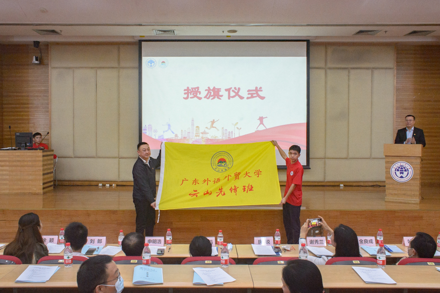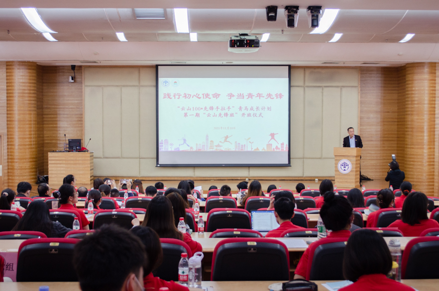 本网讯 为深入贯彻落实习近平新时代中国特色社会主义思想,贯彻落实学校第四次党代会精神,我校围绕“为党育人、为国育才,培养高素质国际化人才”的初心使命,实施“云山100·先锋手拉手”青马成长计划,设立“云山先锋班”。11月18日下午,由党委组织部、党校办公室、团委主办的首期“云山先锋班”开班仪式在我校北校区图书馆报告厅举行。校党委副书记唐锐为云山先锋班授旗。校党委组织部、党校办公室、党委统战部、党委学生工作部、党委研究生工作部、校团委等职能部门负责人以及学院党委副书记代表出席开班仪式。