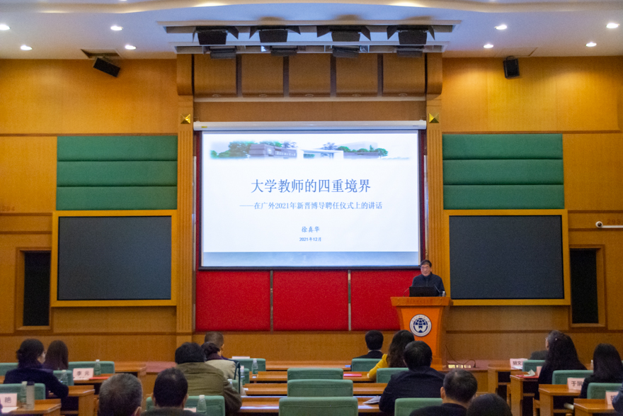 本网讯 12月8日,我校在北校区国际会议厅举行2021年新晋博士生导师聘任仪式暨全体博士生导师培训会议。校长石佑启为新晋博士生导师逐一颁发聘书并讲话。广东省优秀社会科学家、我校原党委书记、原校长徐真华作专题讲座,校党委常委胡文涛主持会议。全体博士生导师及研究生院工作人员出席会议。