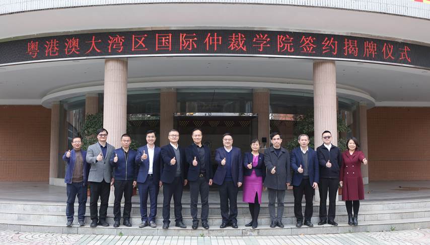 随后,王廷惠、石磊代表双方签署了《关于合作共建粤港澳大湾区国际仲裁学院的框架协议》。在热烈的氛围中,双方领导为粤港澳大湾区国际仲裁学院揭牌。
